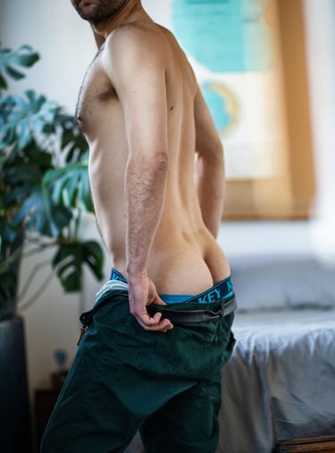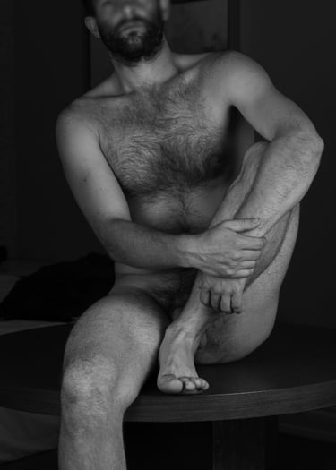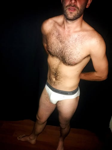 6 ft tall. 180 lbs. Medium-length hair. Trimmed beard and mustache. Early 30s.